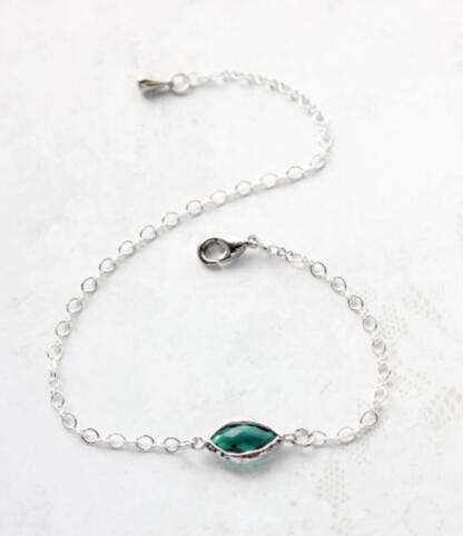 | Emerald Bracelet | Small marquise emerald, dainty silver chain | Worn |