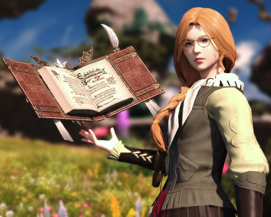 Ceren is what you can think of as a Scholar-leaning Arcanist, specializing in protective and restorative magics. Canonically, soul crystals are very circumstantial and particular to their stories, and so I personally prefer to not use them. In that same vein, Ceren doesn't employ the use of a carbuncle. Instead, her abilities are more spellcasting focused with the use of a grimoire as the conduit.