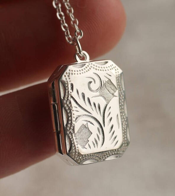 | Silver Locket | Partially tarnished locket, medium silver chain | Worn |